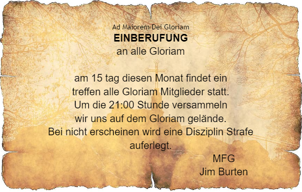 Eine Einladung zum Tugend Unterricht der Mitglieder Gloriam's.