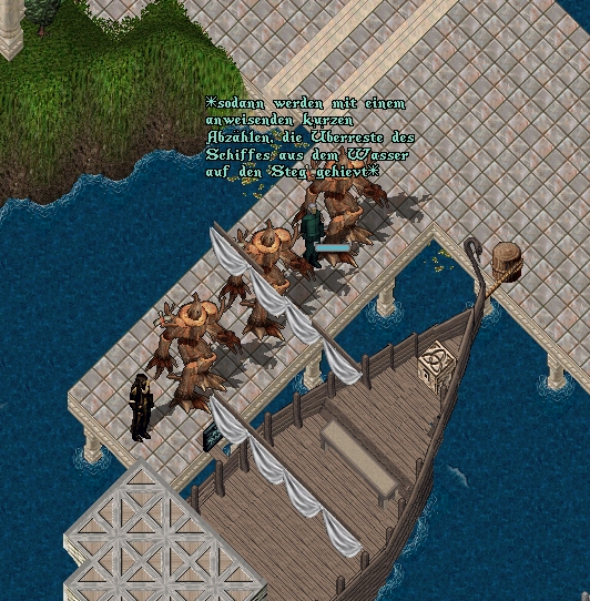 Mithilfe herbeigerufener Waldhirten und der tatkräftigen Unterstützung weiterer Hochelfen, wurden die verbliebenen Überreste des alten Fährschiffes an Land gehievt, und dort auf ein Gerüst aufgedockt.