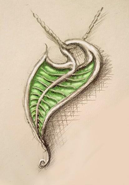 Für sich selber wählte er einen Anhänger für ein Amulett aus, in der Form eines geschwungenen, und ebenso fein gearbeiteten Blattes.