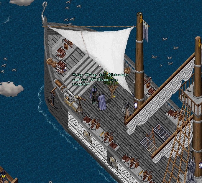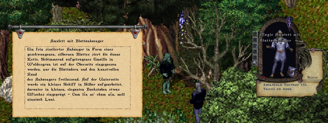 Der Anhänger in Form eines winzigen, äusserst kunstvoll geformten Elfenschiffes, den er einst von seiner verstorbenen Frau Kaleja angefertigt bekam, und die Jahrhunderte über stets getragen hatte. Es war nur logisch, es ebenfalls miteinzubeziehen - hatte sie doch in einer Vision während ihrer letzten Stunden seine Zukunft an der Seite einer anderen Elfe gesehen.