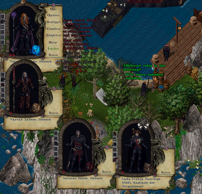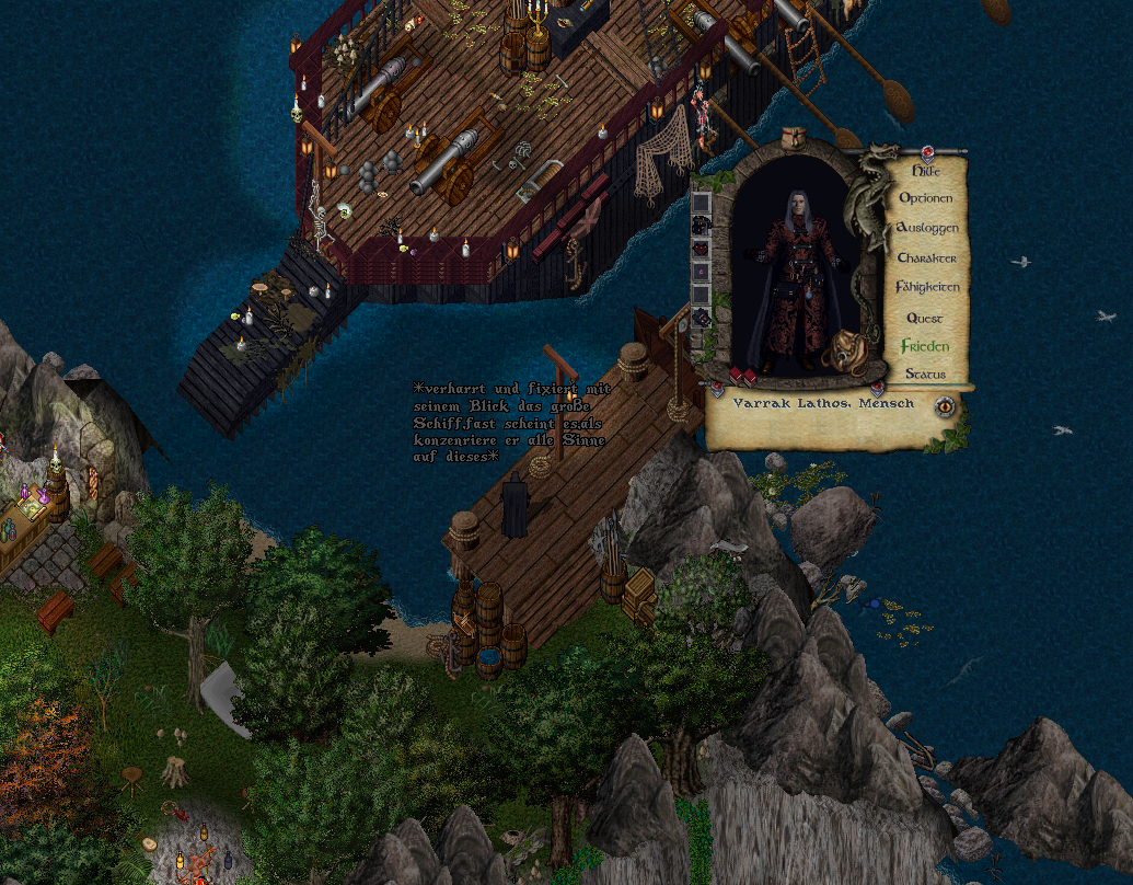 Alle anderen waren bereits gegangen, hatten sich zurückgezogen oder ihren Aufgaben zugewandt. Aus der Nähe drangen das Lallen, Lachen und oft auch Brüllen der Besucher in der Taverne an sein Ohr. Ein Hafenloch wie es im Buche stand und doch war es mehr als passend für diesen Ort. Hier konnte nahezu alles möglich sein…ein schneller Tauschhandel ohne nennenswerte Zeugen…Informationen, die man anderswo sonst nie finden würde…oder einfach auch ein geräuschloses, dauerhaftes Verschwinden unliebsamer Dinge. Praktisch…äußerst praktisch.