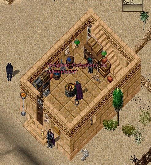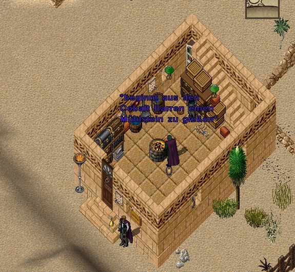 Sie fachte die Esse nochmal an und beginnt an das Cobalt Erz zu schmelzen.