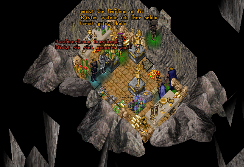 Kurze Zeit später als sie realisierte, dass es wahrlich wohl nur ein Traum war, war es wie ein Blitzgedanke der ihr durch den Kopf Schoss. "Ich habe die Mine vergessen", sprach sie da wohl schon hektisch zu sich selbst und machte sich daran so schnell wie möglich ihre Rüste anzuziehen und sich bereit zu machen, um ihre Nachricht ihren Schwestern zu überbringen. Es dauerte nicht lange bis sie die goldenen Kriegerinnen sammelte und einen Trupp hinunter des Berges, in Richtung der Mine kommandierte. Als sie bei der Mine angekommen sind und in den tiefen Schacht hinunter blickte schaut sie angespannt zu ihren Schwestern. "Macht euch bereit Schwestern", die Kaiserin griff nach dem Knauf ihres Schwertes woraufhin sich die Macht des Schwertes in einer schnellen Geschwindigkeit, Blitzartig um ihren Körper legt und eine strahlende Aura sich um die Amazone legte, welche in einem grellen Licht aufhellte und sich langsam wieder zu einem nicht blendenden Licht entwickeln würde. Niriel hebt ihr Schwert in die Luft und mag voller Entschlossenheit und Stolz ihren Schwestern das Kommando geben, die Minen zu betreten und das Untote Volk in den tiefen Schächten der Mine auszulöschen. Mit Nyames Kraft und der Entschlossenheit der Kriegerinnen, haben sie sich bis zum Ende der Tiefen der Grotte durchgekämpft, als sie letztendlich am Ende angekommen sind, offenbarte sich ein riesen Kristall, welchen sie zuvor noch nie gesehen haben. Sie zögerten nicht lange und haben ein Fass voller explosiver Flüssigkeit aufgestellt, welches sie mit sicheren Abstand mit einigen Detonationspfeilen beschossen haben. Kurz darauf gab es eine Explosion, welche den Kristall in viele kleine Einzelteile zersplittern ließ. Auf den Weg zurück haben sie immer wieder kleinere Sprengungen unternommen, um den Schacht - die Grotte ein für alle mal versiegeln sollten. Wieder am Eingang der Grotte angekommen, platzierten sie ein weiteres Fass um auch diesen zu verschütten.