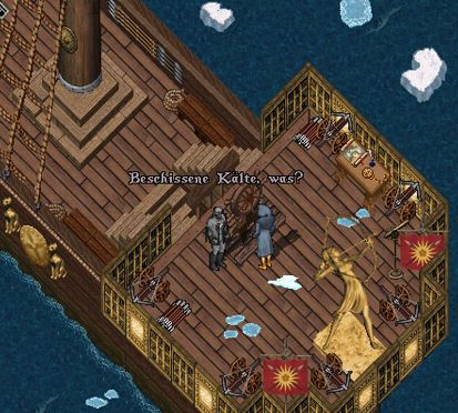 Den jüngeren Amazonen war das Fahren auf offener See auf einem Schiff wohl nicht so sehr geheuer und so war es erneut an ihr, sich gen Krähennest aufzumachen, um zu schauen, wie man sich des Eises entledigen könnte.