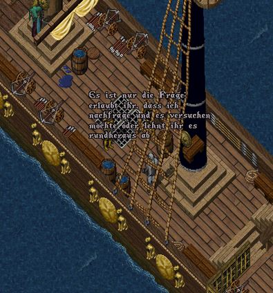 Just als sie einem Gespräch lauschte, bei dem es wohl um die Ballisten an Bord ging, frischte der Wind merklich auf und trug die ersten Worte so rasch von dannen, dass sie ihr Ohr nicht mehr zu erreichen vermochten.