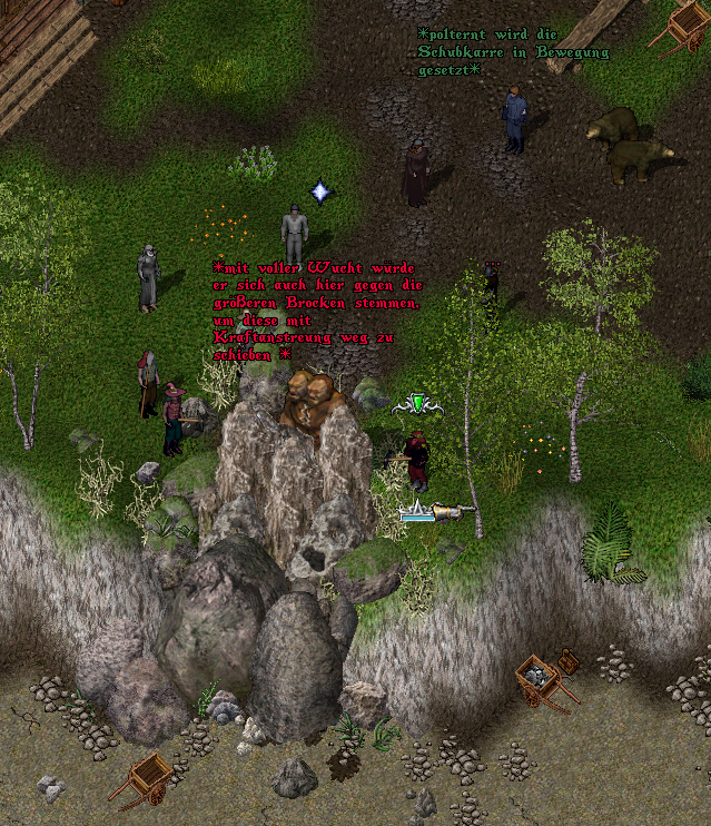 Ein weiterer Trupp packte einige nützliche und von der Form her passende Steine auf Schubkarren und verfrachtete diese zur lädierten Brücke.
