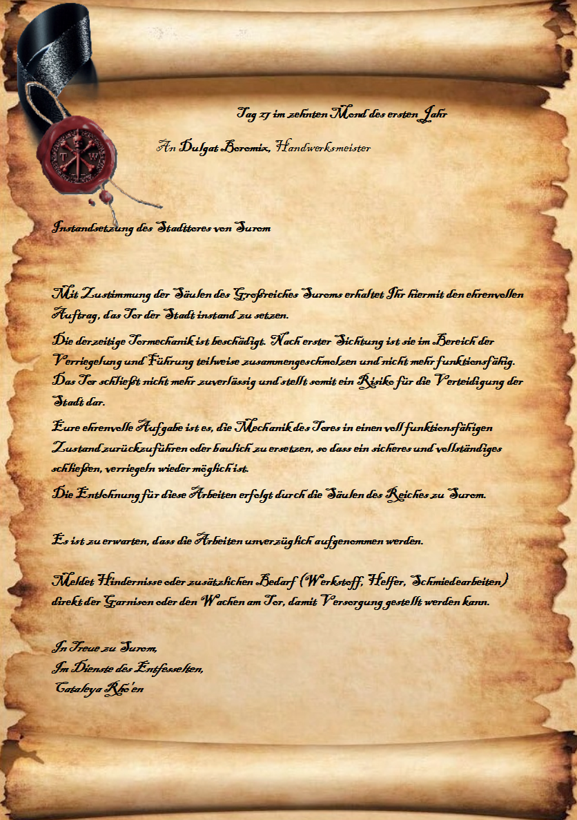 Sie schrieb ohne abzusetzen. Als die letzte Zeile stand, blies sie die Tinte nur kurz an das dunkle TW-Wachs oben links ehe sie es zusammenrollte.