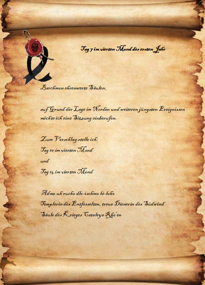 *Rhonya verfassste inen Brief fürdie Säulen, außerdem hinterlegt sie eine Abschrift des Brief bei der Garde*