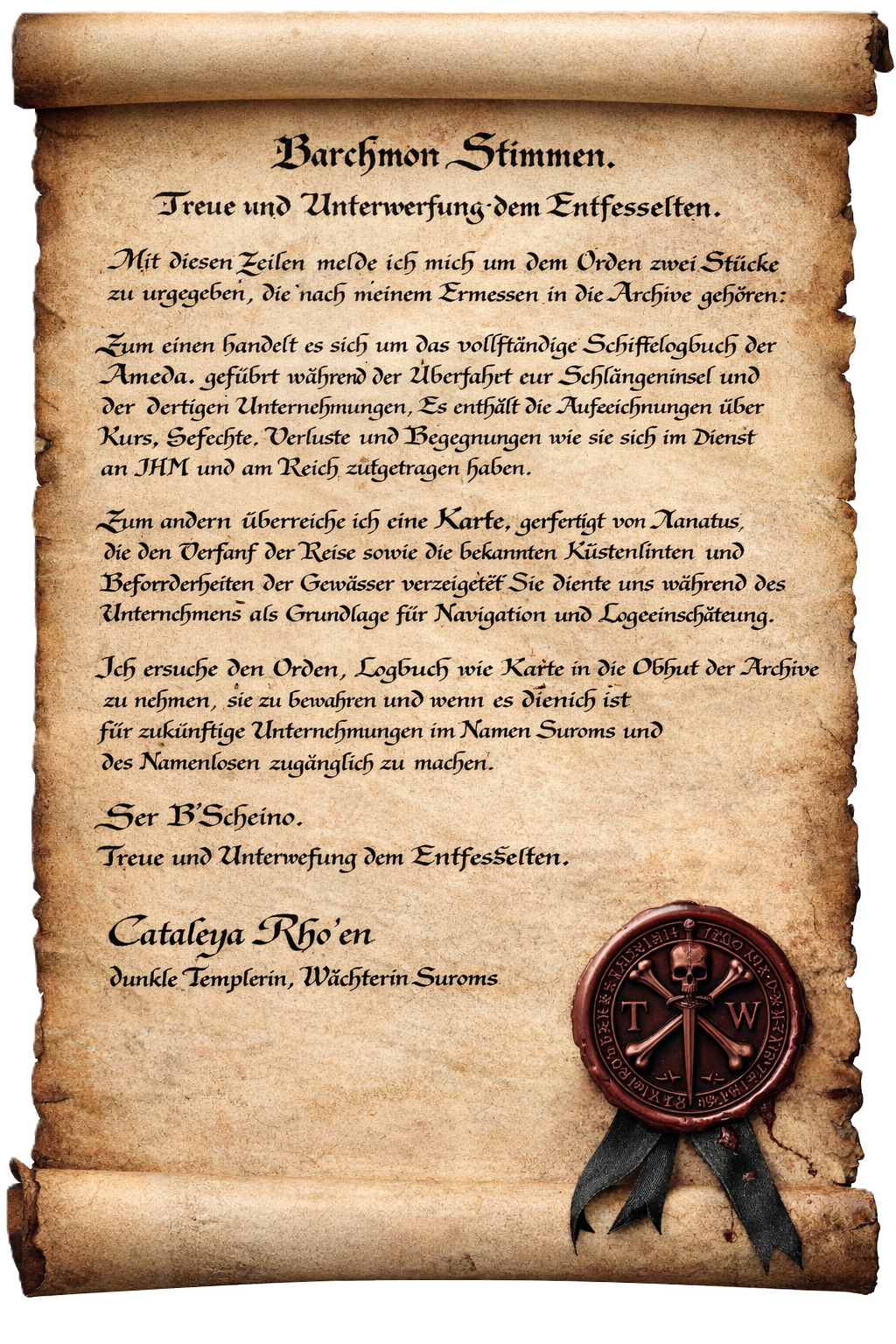 Sag, es sei von Templerin Cataleya persönlich verfasst."