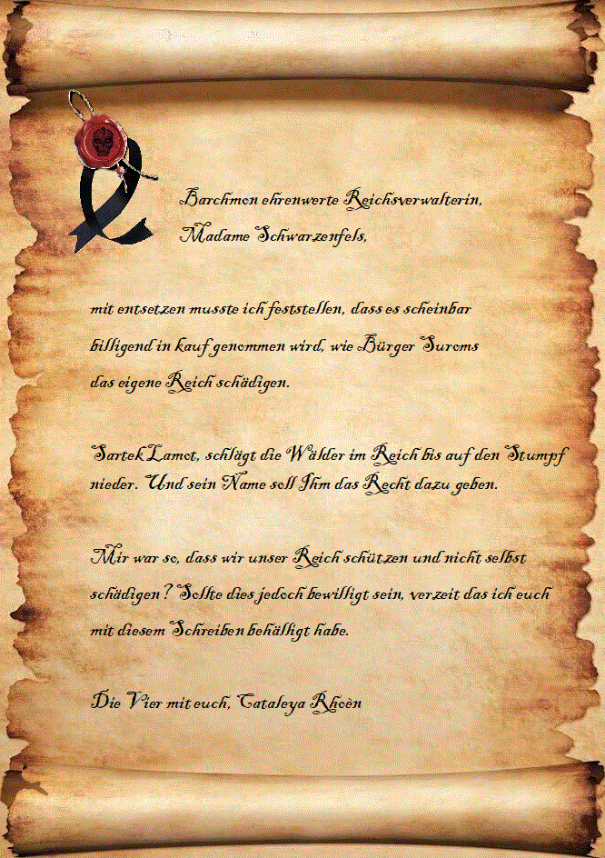 Ein versiegeltes Pergament liegt im Bankhaus für Sorsha bereit