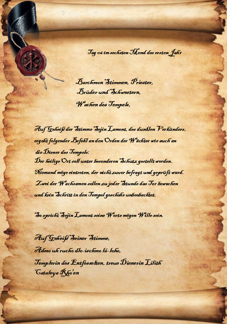 ergeht folgender Befehl an den Orden der Wächter wie auch an