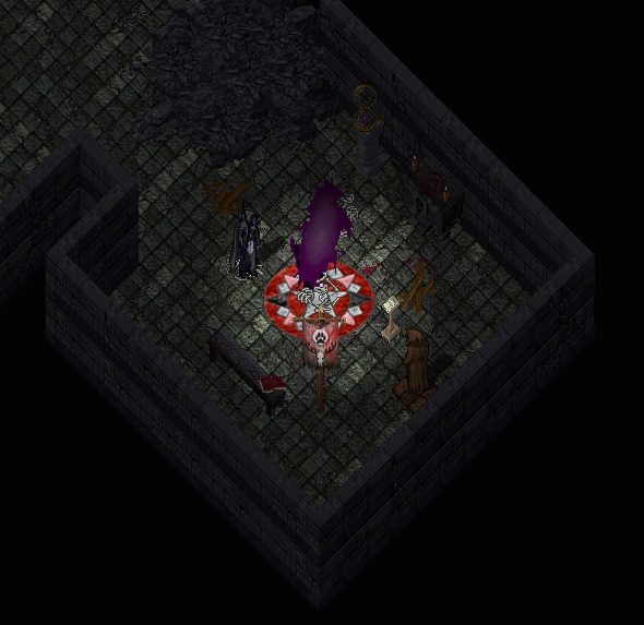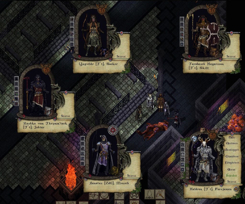 nachdem letztens die Irrwege des Monarchen angesprochen wurden und ich dankenswerterweise den Hinweis der Hochmaga erhielt, es könne sich bei seinem Rückzugsort um das seltsame Gemäuer der Steppe handeln, habe ich Nachsicht gehalten. Beim Abklopfen eines Wandteiles im Erdgeschoß des Gemäuers, geradewegs vom Eingang bis zum letzten Raum und dort rechts, konnte ich einen Mechanismus auslösen, welcher eine Geheimtür öffnete. Dahinter ging es hinab in dunkle Gänge - in denen ich bald schon auf Gegenwehr stieß. Nachdem ich einige dieser gespenstischen Soldaten und Assassine elimierte, konnte ich in einer weiteren Kammer ein Portal finden, wovor die Standarte der Barbaren stand. Es scheint also, als sei dieser Ort schon Ziel mutiger Abenteurer...sofern man also noch unverfälschte Spuren auffinden will, sollten die Suromer 'Verantwortlichen' wohl eiligst selbst eine Exkursion einberufen.