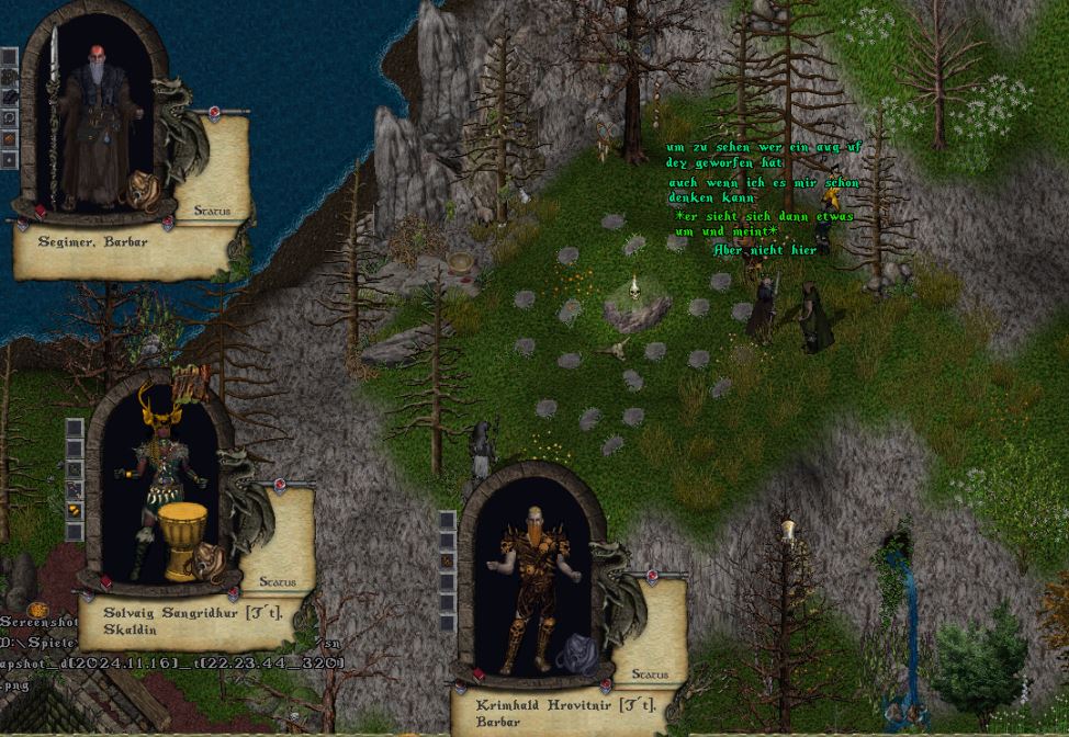 Haldron verneigte sich vor ihnen und stützte sich auf seinen knorrigen Stab. „Grimvoerdr, du Grimmiger Wächter. Lifskjold, du Hüter des Lebens. Und du, Aettbjorn, weiser Ahnenbär – willkommen im Hain. Der Ahnenbaum braucht Euren Schutz.“
