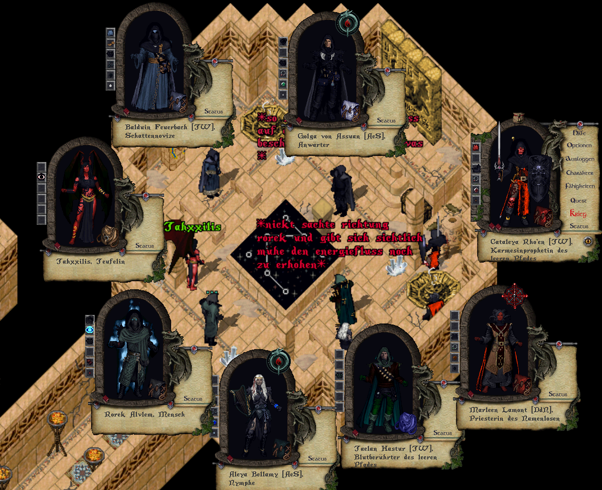 Wir versammeln uns zur achten Stunde nach dem Mittagsläuten vor den Toren Solgards und brechen von dort zum geplanten Ritualplatz auf. Wappnet Euch für alle möglichen Eventualitäten.