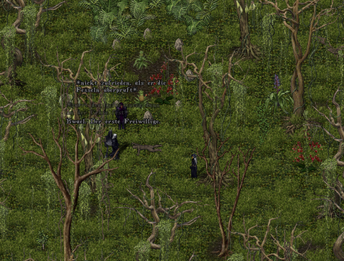 Nach einem kurzen Gespräch wurde deutlich, dass keine der hier Anwesenden als Arbeitskraft taugte. Daher verlangte die Delegation nach Materialien wie Holz oder Steinen. Die Druidin Gwendolyn wies diese Forderung jedoch entschieden zurück und erklärte: „Nichts davon werdet ihr hier von uns auf dieser Lichtung erhalten.“