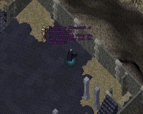 Shel'Dzar bittet die Priesterin Shynlena ihr zu folgen, da der Platz an dem sie verweilte, für das Bauvorhaben inanspruchgenommen wird. Die Priesterin zieht sich ohne weitere Worte zurück in die Halle der Häuser, um dem Lärm etwas zu entkommen. Anschließend baut der Sargtlin die Übungspuppe aus dem Bereich ab und stellt diesen in den Rämen der Melee Magthere neu auf.
