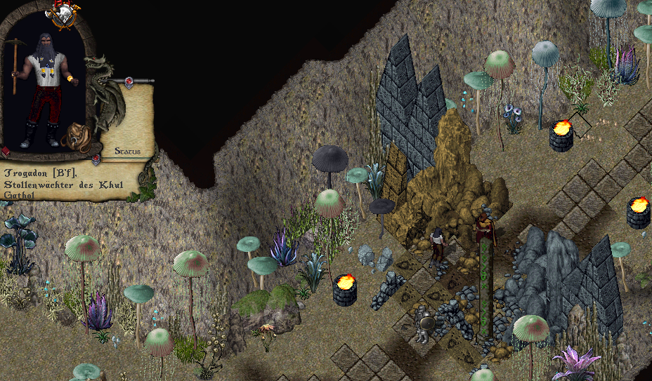 Wie so häufig, seit dem düsteren Ereignis am Tor zum Kazad, ging Trogadon zu dem Dawi Haldrim, der an den Trümmern Wache stand. Der stämmige Dawi stand wie immer regungslos, ja fast wie in Starre versetzt an der Stelle, wo einmal das große Tor stand. Und allen Dawi, und jenen die ihnen gut gesonnen sind, Schutz und Sicherheit bot. Obwohl er sich nicht zu bewegen schien, ja kaum zu atmen, konnte man bei genauerem Beobachten, in seinen Augen erkennen, dass er dennoch alles in seiner Umgebung, Gutes sowie Schlechtes, genaustens wahr zu nehmen schien.
