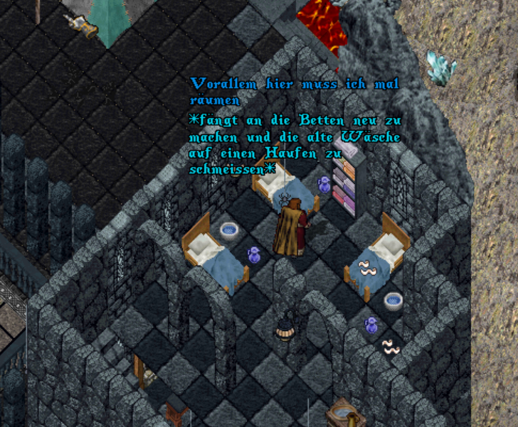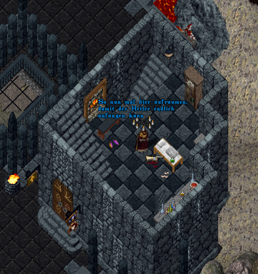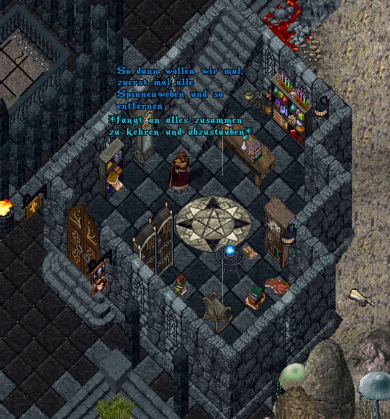 Im Erdgeschoss werden alle Spinnenweben und anderes Zeug zusammengekehrt und im nächsten Lavabecken verbrannt.