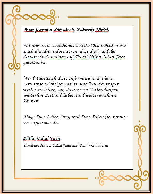*Jene ist sorgsam verfasst und wird von einem elfischen Boten überreicht*