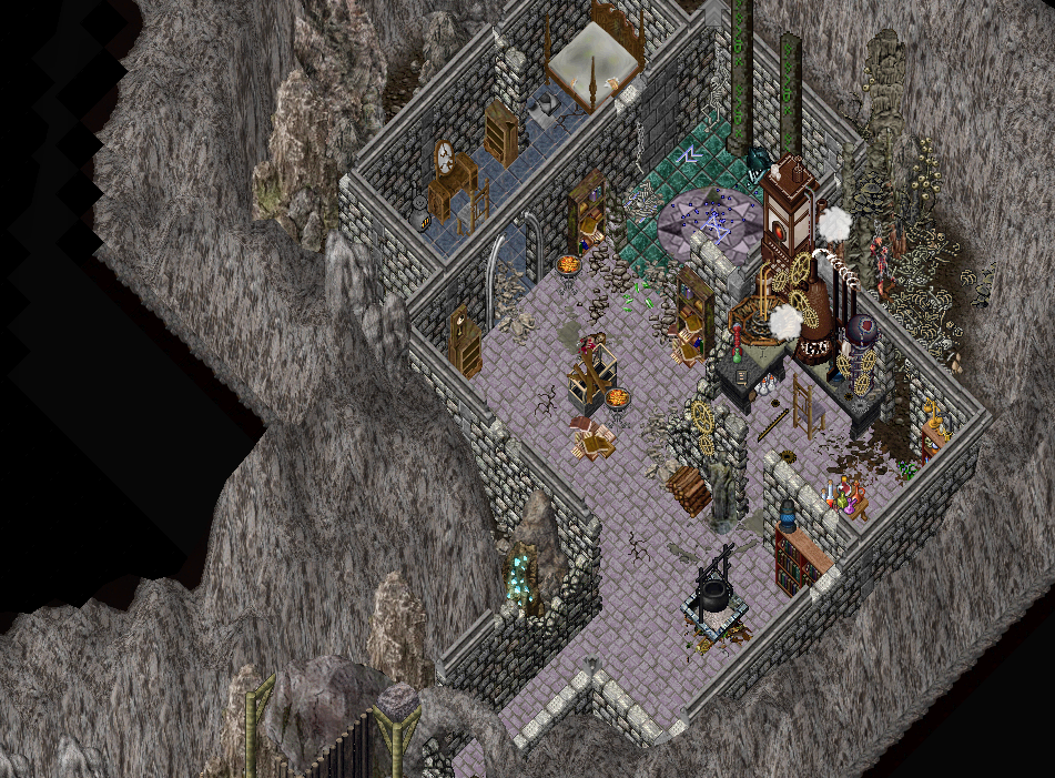 In einer Ecke dieses Labors fanden sich Bücher und Schriftrollen. In einem Nebenraum mit halb zerfallenen Wänden hatten sie die Ursache für den Lärm gefunden. Eine Apparatur, die dampfend, zischend und quietschend ihre Arbeit verrichtete, welche auch immer dies war. Einer Erzählung der Archäologen nach hatten sie an der Apparatur herumgespielt und hatten einige Einstellungen vorgenommen. Dann war die Apparatur jedoch außer Kontrolle geraten und sie hatten sie nicht mehr ausschalten können. Ob diese Apparatur mit den Geschehnissen in den Bergen zu tun hatte? In einer weiteren Ecke des Raumes entdeckten sie einen zerstörten Siegelkreis oder Bannkreis mit gewaltigen Runensäulen. Das Blut am Boden, sowie einige Aufzeichnungen in einem gefundenen Tagebuch deuteten darauf hin, dass hier die Versuche am Troll vorgenommen wurden, bis – nach einem Erdbeben – der Haupt-Schutzkristalle versagte. Da keine weiteren Aufzeichnungen folgten, sondern nur noch Blut die Seiten zierte war denkbar, was passiert war. Die weitere Untersuchung dieser Einrichtung hatte schließlich offenbart, dass sich die zweite Höhle, die sie suchten, nicht direkt im Urwald befand, sondern etwas abseits, am Ursprung eines Bachlaufes. Anhand dieser Aufzeichnungen hatten sie feststellen können, dass sich dort der Kontrollstein befand, mit dem man in der Lage sei den Troll notfalls seiner Kräfte zu berauben, sollte man die Kontrolle über diesen verlieren. Da aber offenbar niemand den Ausbruch des Trolls überlebt hatte, war auch niemand zu dieser Höhle gegangen. Mit etwas Glück befand sich dieser Stein somit noch dort, wo ihn seine Erschaffer ursprünglich zurückgelassen hatten.