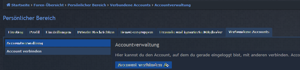 Das geht unter dem Persönlichen Bereich / verbundene Accounts - rechts oben unter der Suche den kleinen Pfeil zum ausklappen / persönlicher Bereich und der letzte Reiter