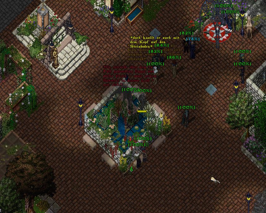"Feuer! Fuer! Feuer!" Die Diener des Namenlosen, welche bei dem Angriff an seiner Seite standen, liefen im Angesicht eines eines leibhaftig gesandten Engels der goldenen Schlange ebenso zur Höchstform auf, wie die tapferen Paladine des Herrn, welche von dessen Anwesenheit offenbar mit weitaus mehr Mut und Tapferkeit beflügelt wurden als er für angenehm befand.