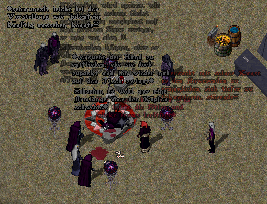 Und so machte sich das Qu'ellar in Begleitung der Erznekromantin auf den Weg zum Ritualplatz, wo die Augen-Operation durchgeführt werden sollte. Dort angekommen galt es die Vorbereitungen für den Eingriff zu erledigen.