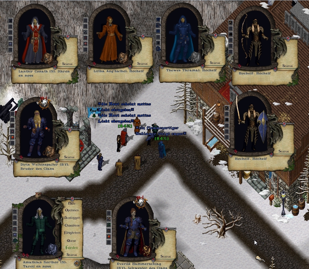 Sein eigenes Runenbuch hervorziehend, noch einen Blick gen dem noch bewußtlosen Lanthir gerichtet und Nell'as heranwineknd, verließen die Worte der hochelfischen Magie seine teils verbrannten Lippen. Die Steine erschienen und sekunden später waren sie in Silberburg. Sofort blickte ein überraschter Edain in Ihre Gesichter, dieser Ausdruck wurde durch Schrecken ersetzt, als er auf die Höhrner blickte, welche aus Lanthirs Schädel wuchsen. Dieser lag wie ein verschnürter Sack über der Schulter des elfischen Kriegers und rührte sich nicht. Wieder brandete eine Schmerzwelle durch den Körper Riardons und fast undeutlich fragte er nach dem genauen Ort der hiesigen Kathedrale. Etwas unsicher ob des Geschehens, nickte der fremde Edain aber und wies ihnenh den Weg, öffnete sogar die Tür. Zu diesem Zeitpunkt ritt ein weiterer Edain heran,groß und muskulös, es war Nagron Vandokir. Dieser hatte sich in der Schlacht gegen das Untotenlager bereits bewährt und auch der Hauptmann erkannte die Lage schnell. Er rutschte von seinem ungesattelten Pferd und bot direkt seine Hilfe an, dankend nahmen Riardon und Nell'as diese an und gemeinsam betraten sie die ehrfurchtsgebietene Kathedrale des Edaingottes.