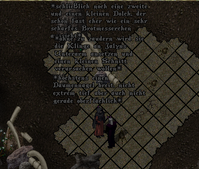 Und so machte sich das Qu'ellar in Begleitung der Erznekromantin auf den Weg zum Ritualplatz, wo die Augen-Operation durchgeführt werden sollte. Dort angekommen galt es die Vorbereitungen für den Eingriff zu erledigen.