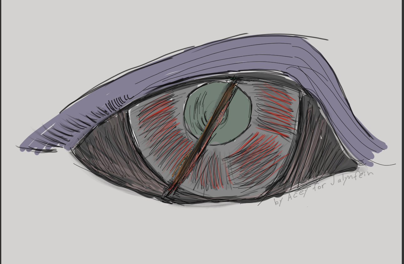 In einem ruhigen Narbondelzyklus suchte Jalynfein in der schwarzen Festung des ersten Hauses der Ilithirii einen Spiegel auf, nahm die Augenklappe ab, die mittlerweile zu seinem Markenzeichen geworden war und griff sein Skizzenbuch um sein linkes, verletztes Auge zu skizzieren.