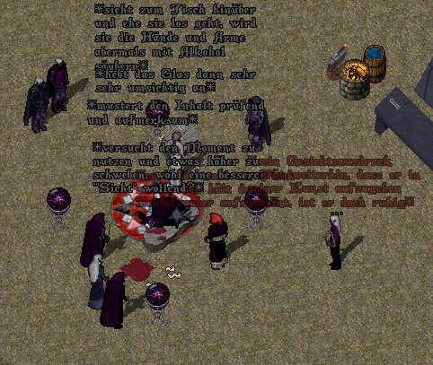 Und so machte sich das Qu'ellar in Begleitung der Erznekromantin auf den Weg zum Ritualplatz, wo die Augen-Operation durchgeführt werden sollte. Dort angekommen galt es die Vorbereitungen für den Eingriff zu erledigen.