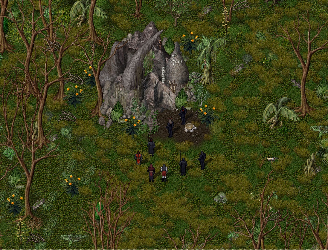 Angekommen in der elendigen Schwüle des Dschungels blieb die Wächterschaft eng beieinander und erkundigten die Gefilde in welcher sie angekommen waren. Nach bereits kurzer Zeit bestätigte die Stimme A’bathurs aus dem dunklen Mal in Sa’Deas die richtige Umgebung. So konnten sie ruhigen Gewissens in engerem Raum weitersuchen. Viegos Kompass begann ebenfalls langsamer und ruhiger zu pendeln. Sie waren der richtigen Fährte auf der Spur…