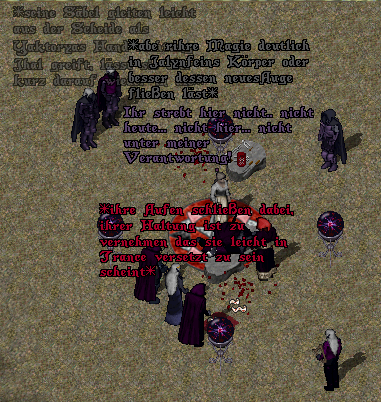 Er konnte sich nicht recht daran erinnern. Vyktorya konnte auch nur einen Schatten auf seiner Seele erkennen, für einen genaueren Blick hätte es Rorek benötigt, doch war er nicht abkömmlich. Aber Jalynfein arbeitete bereits ein Ritual aus um die dämonische Macht, die in seinem Auge schlummerte und durch den schwarzen Angol scheinbar verstärkt wurde, zu seinen eigenen Kräften zuzuführen und den Dämon, der scheinbar während der Müdigkeitsphasen die Macht über ihn erlangte, ein für alle Male zu unterdrücken.