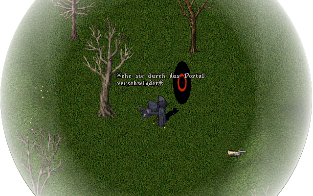 ,,Ha Rabo schmah jo a chabreisi uh ftah uh darbo." Klingen die fremdartigen Worte, ehe sich im nächsten Moment ein Riss vor ihr in der Luft bildet. Begleitet von einer grässlichen Geräuschkulisse formt sich daraus ein Portal aus, durch welches sie hindurchschreitet. So plötzlich es kam, verschwindet das Portal daraufhin wieder..