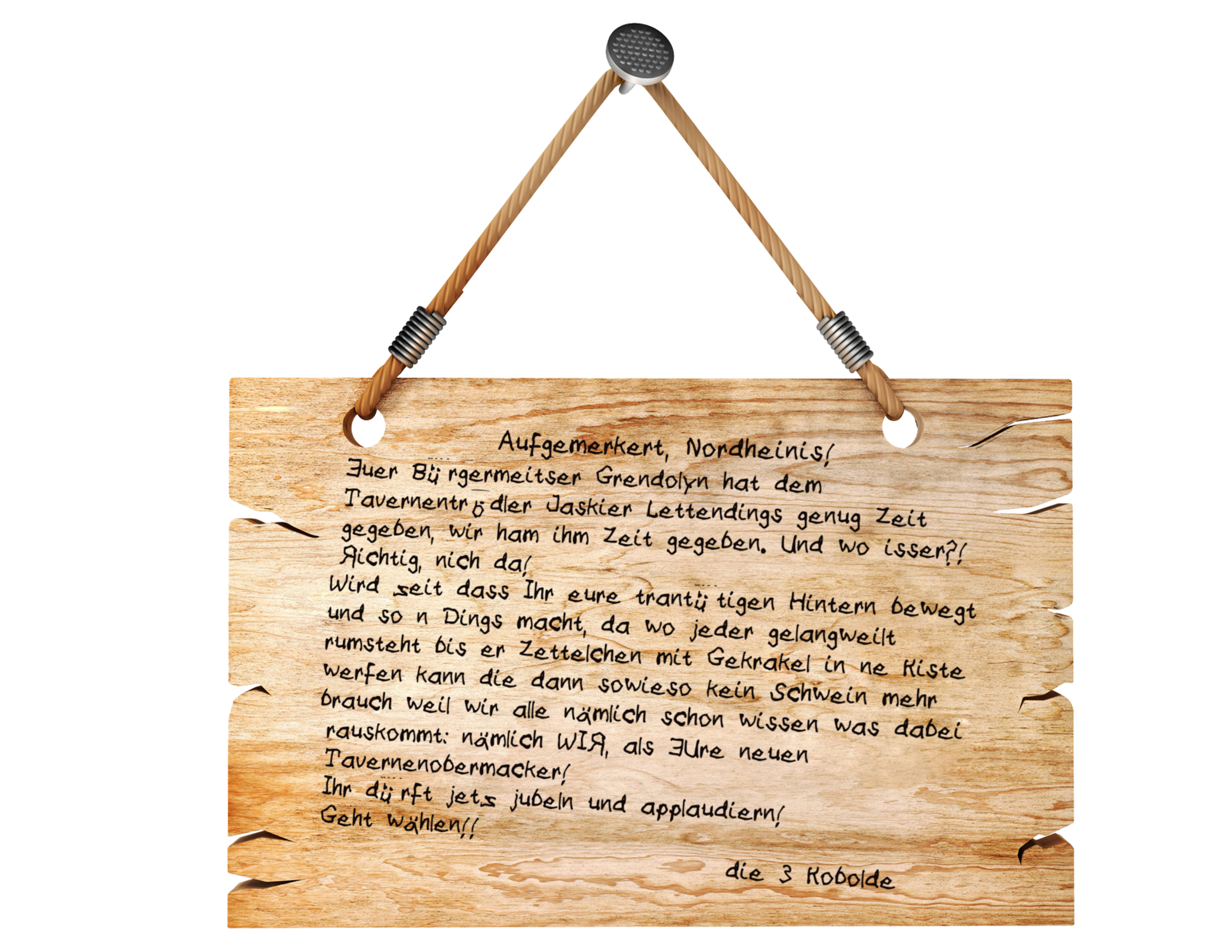 Im Laufe des Abends wird sich ein Bote im Bürgerhaus Nordhains einfinden und einen Brief zu Händen des Bürgermeisters Pandor und seiner Vertretung Davind abgeben.