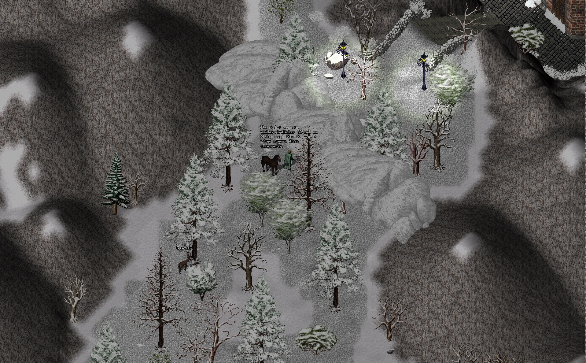 Aanatus stand mit prüfendem Blick vor der riesigen Schneewand, die sich vor ihm auftürmte. Die Felswände links und rechts davon zeugten davon, dass es wohl ein Taleingang war, zumindest ein Einschnitt im Gebirge, welcher nun durch diese meterhohe Barriere versperrt war. Er nahm seinen Speer und prüfte die Beschaffenheit: Kompakt gepresster Schnee. Vermutlich schon eine ganze Weile in diesem Zustand, worauf auch eine komplette Vereisung der Oberfläche hindeutete. Darunter gepresster Schnee, grobkörnig, Firn also. Auch das ließ auf einen langen Zeitraum schließen, in der die Eisbarriere hier schon lag. Sein Blick wanderte nach Westen, dann nach Osten. Er nahm mit dem Auge Maß und schätzte den Westgipfel wohl als höher als den Ostgipfel ein. Als er dann etwas von der Schneewand weg ritt, um sich einen Überblick zu verschaffen, bestätigte sich diese Schätzung. Auch vermutete er anhand der Ausformungen der Barriere, dass wohl eine Schneelawine vom Westgipfel nach Osten verlaufend dieses Ungetüm erschaffen hatte. Spekulationen, aber dennoch nicht unwichtig, denn man wollte ja einen Weg durch die Schneemassen finden. Und Aanatus‘ Ansicht nach schien der ungefährlichere Bereich der Ostteil der Barriere zu sein, allein schon deshalb, weil der daneben liegende Gipfel sanfter war und von dort eine erneute Lawine unwahrscheinlich erschien. Vermutlich wäre eine Sprengung oder ein Abschmelzen in diesem Bereich eine Möglichkeit, sich das mühselige Abschaufeln zu ersparen. Er begann mit einer Skizze der örtlichen Begebenheiten und entschloss sich, sobald wie möglich mit dem Brauen etwaiger Tränke zu beginnen.