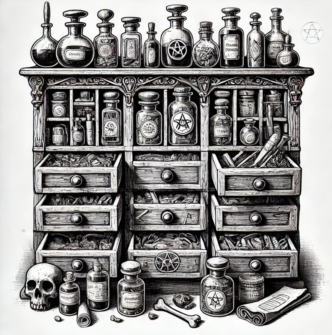 Nach getanem Schreibwerk bequemte er sich in die Alchemiestube. Zufrieden blickte er über die edle Steinarbeitsplatte, welche schon ordentlich mit Behelfszeug vollgepackt war. Die Schränke und Truhen strotzten vor Ingredienzien und so zog er lächelnd sein Alchemiebuch und sein handgeschriebenes Alchemiekompendium aus dem Bücherregal, knackte mit den Fingern und machte sich ans Werk.