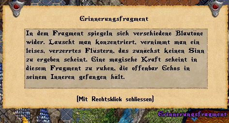 OG: Ein Fragment kann nur eine Erinnerung näher beleuchten. Wir bitten hier um Fairness und den Absprachen mit anderen Spielern IG um die Informationen zu vereinigen.