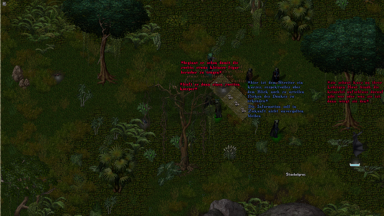 Die Gespraeche mit den Greifen waren auch sehr interessant und er lernte einiges ueber Strategie und Taktik, die Greifen scheinbar doch recht erfahren in der Kriegsfuehrung. So lernte ich zum Beispiel das meine Annahme Palisanden auch auf der anderen Seite der Bruecke zu bauen, um die Bruecke zu sichern war scheinbar doch eine gute Idee. Aber nunja, ich bin alt Grimnicht - ein Lehrling von allem wenn ueberhaupt. Die anderen Wissen sicher schon wie das gemacht wird..