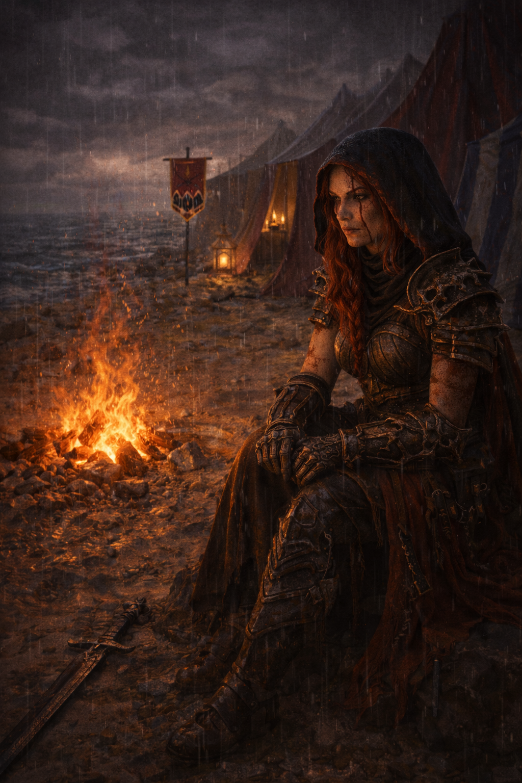 Das Feuer vor Cataleya machte mehr Schatten als das es Licht warf. Über abseits von ihr flatterte das Banner Suroms im nassen Wind, und knapp vor dem Strand lag die Ameda.