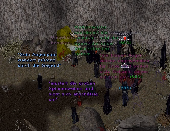Ich stiess auf eine Gruppe von fast einem Dutzend Oberweltlern, welche die Dämonen beseitigten, die Sold'Orbb belagern. Sie wagten es Erklärungen zu fordern, doch die einzige Antwort war die Erlaubnis mit der Ausdünnung der Dämonen fortzufahren. Ich habe sie eine Weile beobachtet, ob sie den erteilten Auftrag auch ausführen, wenn sie schon in unser Reich eindringen.