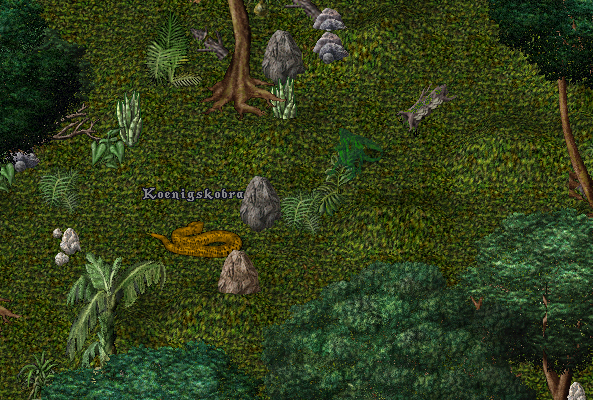 Es dauerte eine Weile, die sie eher ziellos durch den Dschungel streifte, bis sie auf das gewaltige Tier aufmerksam wurde, welches sich friedlich und träge durch den feuchten Untergrund schlängelte. Das geschmeidige Schuppenkleid der Königskobra war von einem goldbraunen Ton und schimmerte im Licht der Mittagssonne leicht. Nachdenklich beobachtete Shira eine Weile die Königskobra, wie sie sich schlängelnd durch das Gebüsch und Gehölz bewegte. Ab und an rollte sie sich ein, oder bewegte sich träge an einem Baumstamm hinauf.