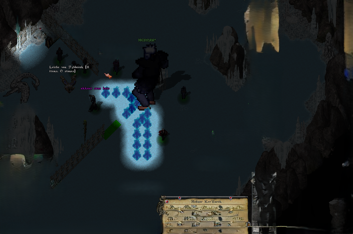 Doch Hednar hatte noch nicht genug. Hednar wollte ebenfalls einen Kampf austragen und so stellte er sich dem fremden Magier entgegen. Er erklärte diesem, dass es nun an der Zeit ist mit Hednar zu kämpfen. Und kaum hatte Hednar dem fremden Reiter dies erklärt, warf Hednar einen Blick auf den Körper am Boden. Eine kurze Überprüfung – Tot.