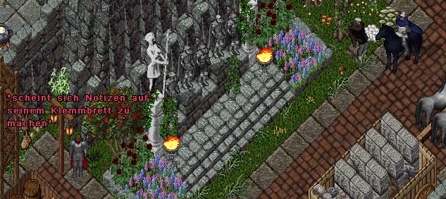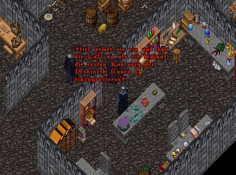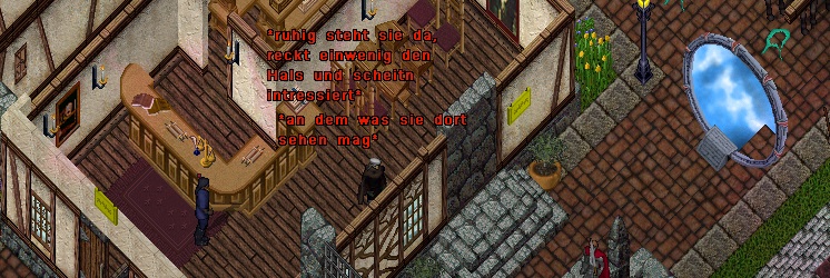 Nach einer weiteren Runde in neuen Gewändern fand sie einen interessanten Zugang, ein Geschäft direkt neben dem neuen Tor hatte geöffnet. Sie betrat den Laden und rechnete damit den Verkäufer in ein Gespräch wickeln zu müssen, doch es schien niemand im Laden zu sein. Den Menschen ihren nutzlosen Plunder abzukaufen entfiel also, dafür gab es durch die Fenster an der Ostseite einiges zu erhaschen in dem Bereich hinter dem neuen Tor.